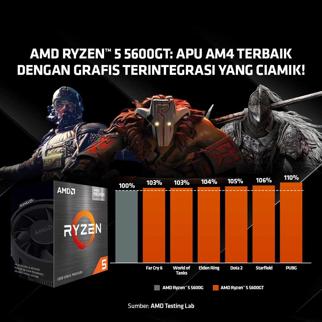 Kenalin nih, prosesor AMD Ryzen™ 5 5600GT dengan grafis terintegrasi yang punya performa optimal!